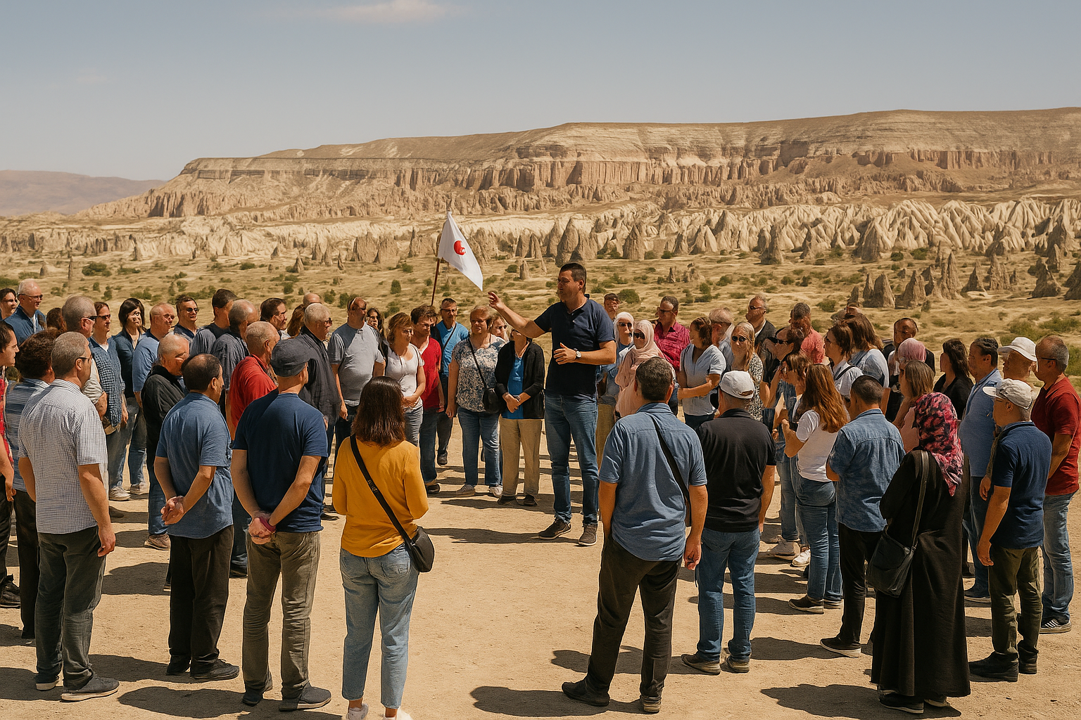 Sabah 09:00. Buluşma noktasında, dünyanın dört bir yanından gelmiş gezginlerle birlikte büyük otobüse binerken o cıvıl cıvıl atmosferi hissediyorsunuz. Rehber, mikrofonla günün tempolu programını anlatıyor. İlk durak Göreme Açık Hava Müzesi. Rehber, grubun dağılmamasına özen göstererek etkileyici bir anlatım yapıyor. Kalabalıkta en iyi fotoğrafı çekmek zor olsa da, bölgenin en önemli yerini görmenin tatminini yaşıyorsunuz. Bu tempo, tam bir verimlilik örneğidir.